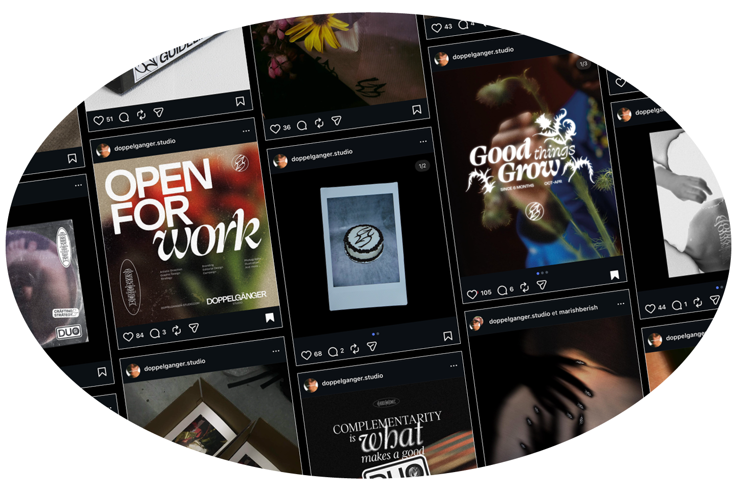 Création de contenu pour le compte Instagram du studio de création Doppelgänger.