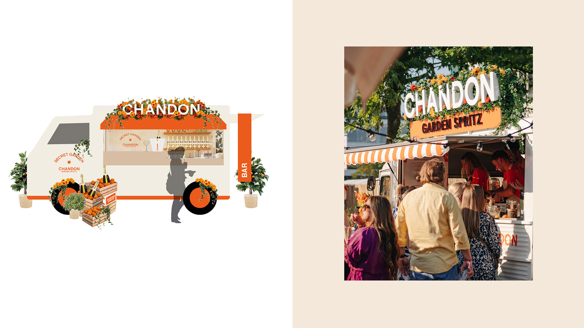 Pour la sortie de son nouveau produit «Garden Spritz», Chandon nous invite à un moment d’authenticité et de flânerie au coeur de son Secret Garden : un événement qui se décline dans plusieurs pays autour d’une figure emblématique locale afin d’exporter et de diffuser ce nouveau rituel d’été. Entre marché et jardin, la direction artistique s’inspire du packaging et de l’expérience : naturelle, conviviale et playful. Elle commence en mai 2023, à Madrid.