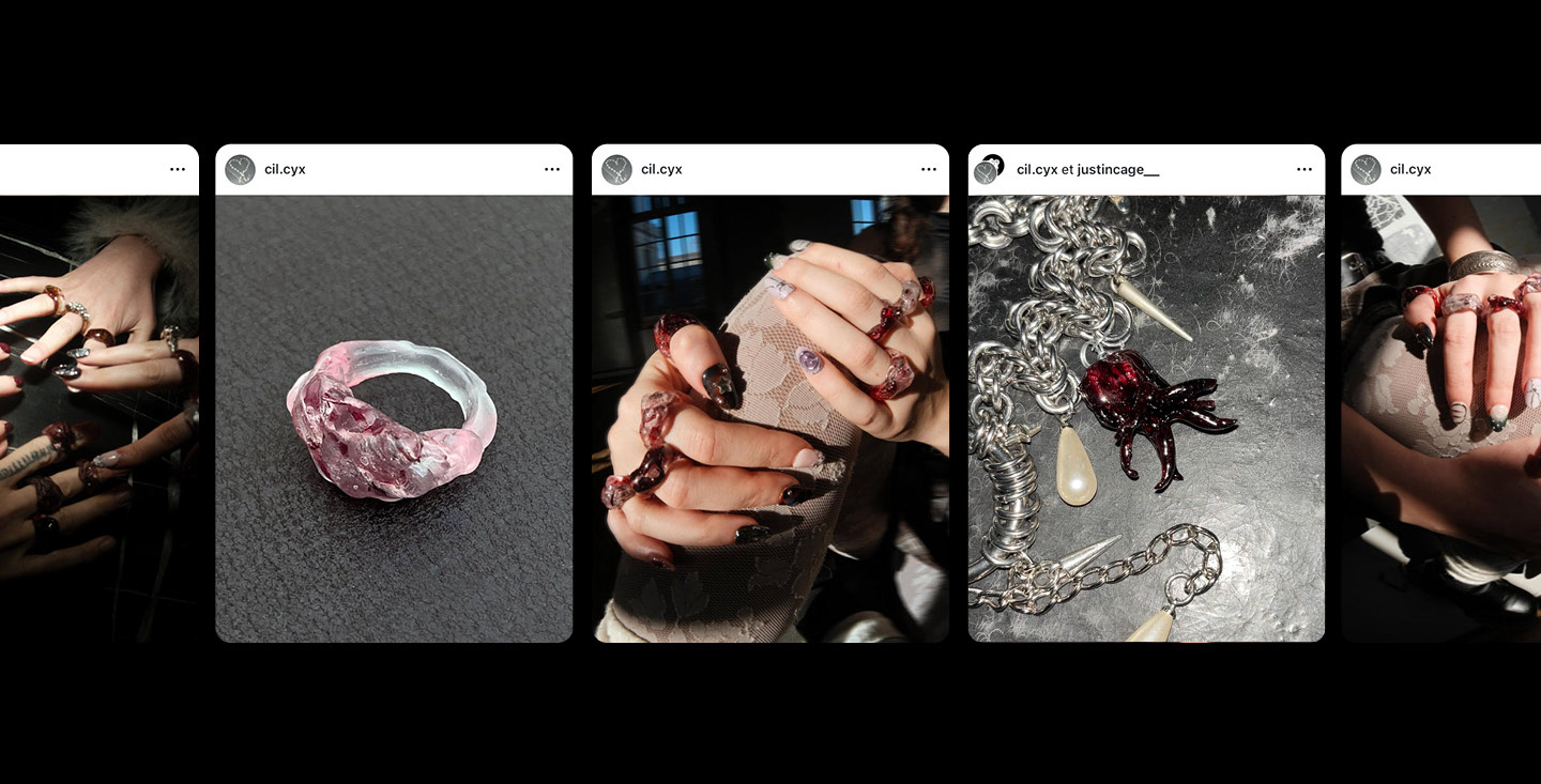 Direction artistique pour Cil.cyx, créatrice parisienne de bagues, en résine et en étain, faites main. Les éléments graphiques et la communication reprend les codes d'une esthétique urbaine alternative, sans se prendre trop au sérieux, pour garder une certaine spontanéité dans un esprit grunge et DIY.